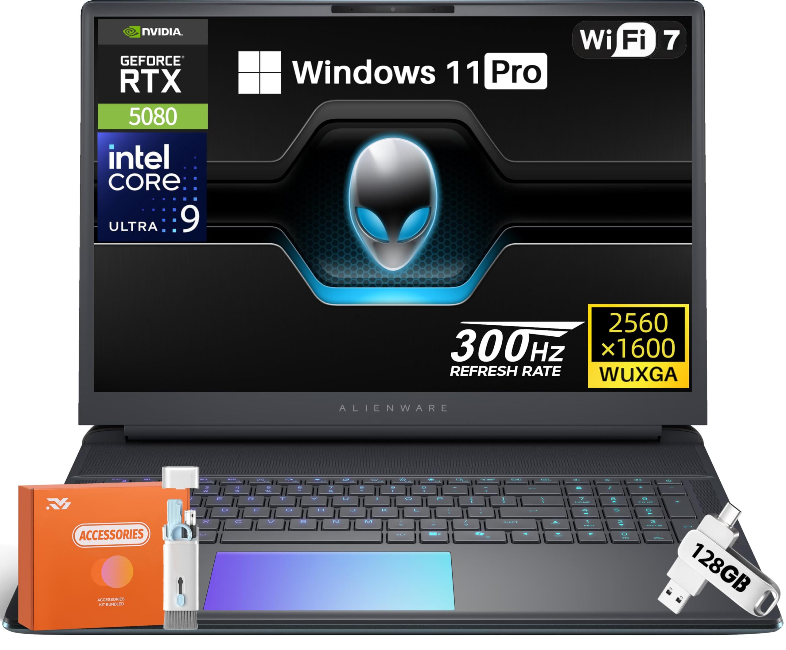 What is the exact power rating for the NVIDIA RTX 5080 graphics card in this model?